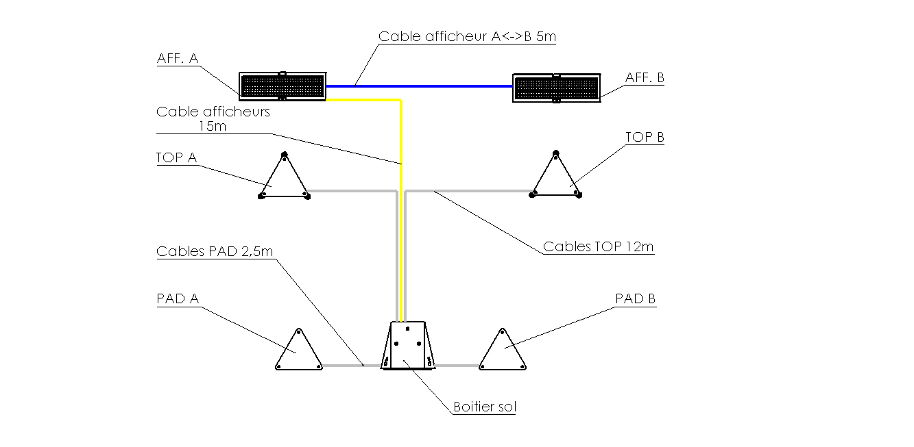 - 2 afficheurs led sommet de mur (voie A et voie B, 15m de câble)