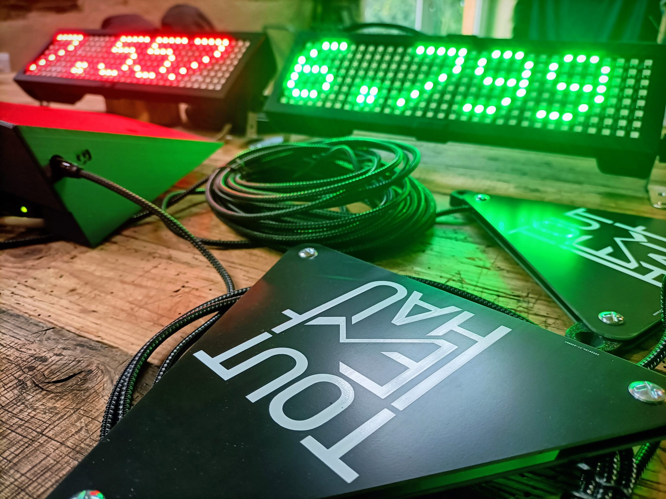 - Fonctionnement avec pad et gestion de faux départ, lancement du décompte officiel IFSC à la télécommande, et reset manuel.
