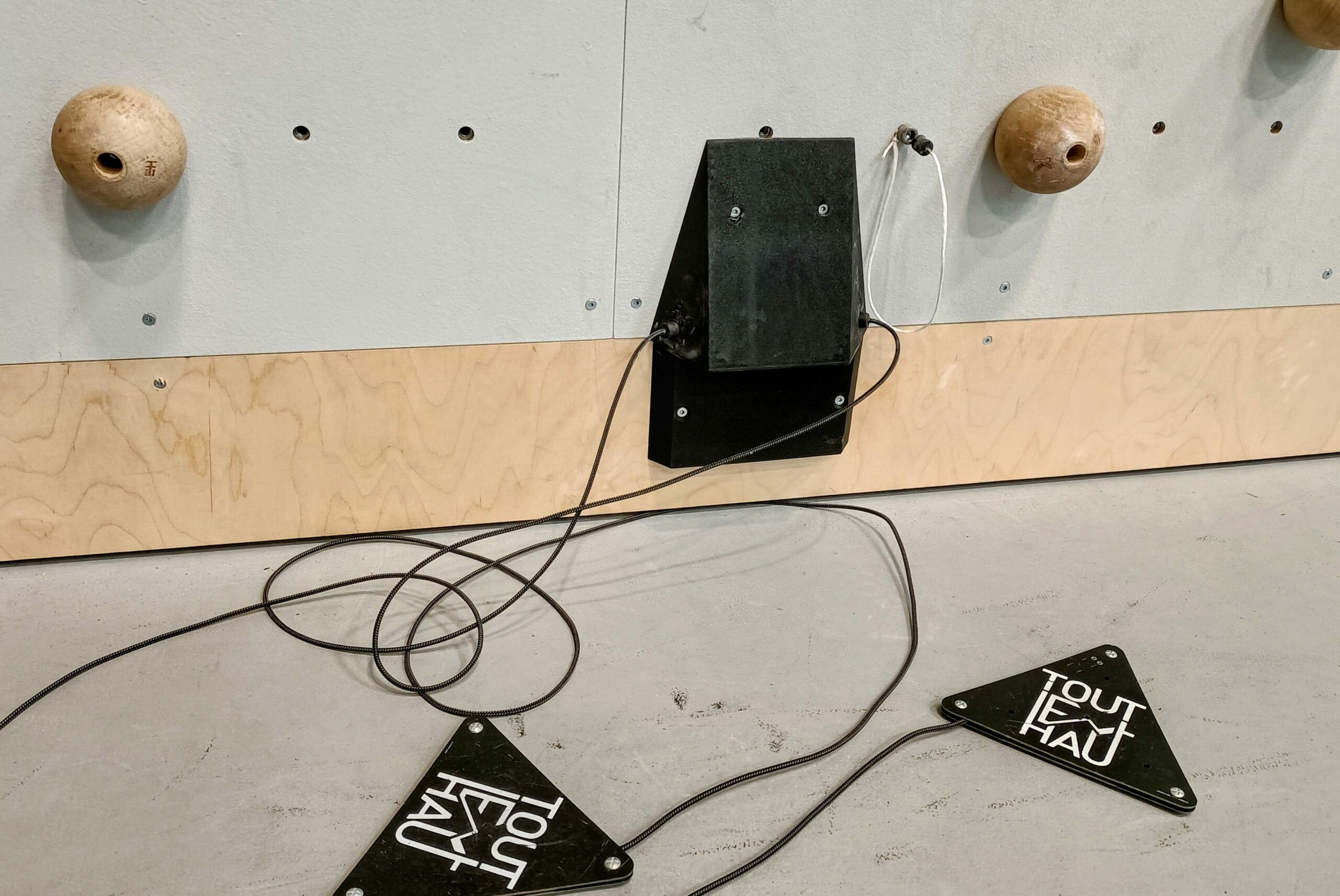 - 2 buzzer de TOP (2x 12 m de câble), passage du câble par un insert de la SAE, sans démontage. (Semble incompatible avec certaines versions d’inserts Kit grimpe). Dans ce cas démontage ou perçage de l’insert nécessaire.